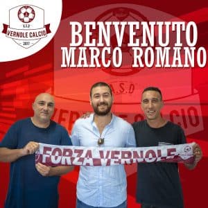 Marco Romano, classe ’89, si unisce al nostro gruppo portando esperienza e tanta qualità in mezzo al campo. Centrocampista duttile, in passato ha militato nelle giovanili del Lecce con qualche esperienza tra i professionisti all’estero. Ha calcato tutti i campi delle categorie dilettantistiche minori con le maglie di Castromediano, Atletico Lecce e Spartak Lecce, fino ad arrivare a noi con tanto entusiasmo, grazie al lavoro del DS Fasini che piazza così il suo primo colpo!